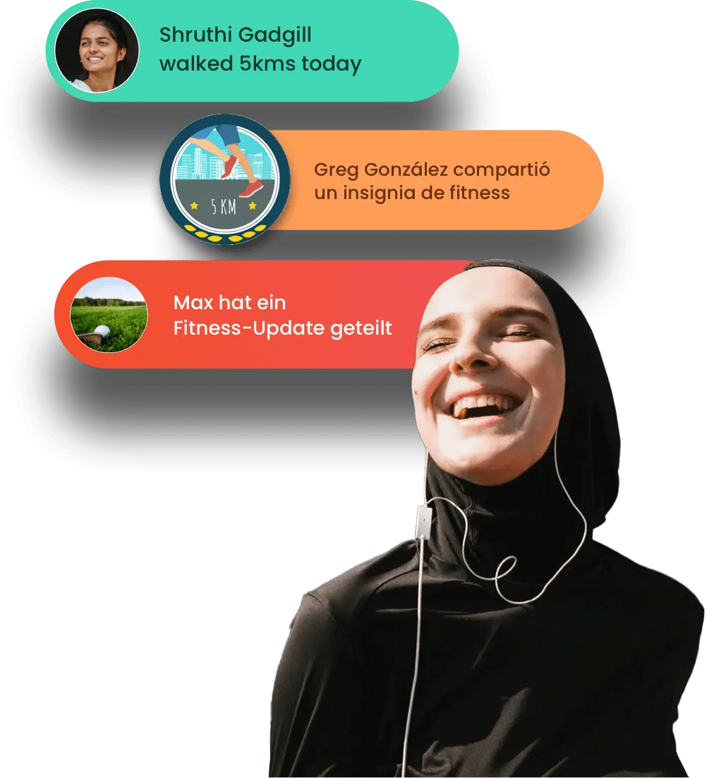 - Ofrece desafíos diversos como desafíos de pasos de Diwali y maratones navideños.